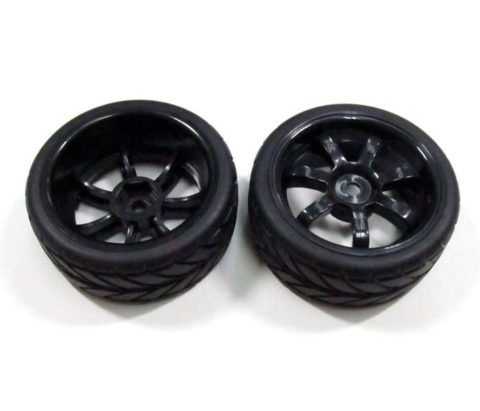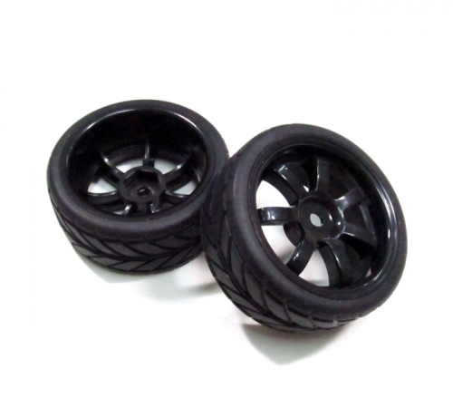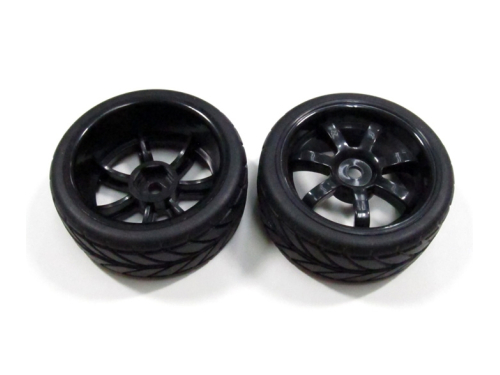 1/10 Mounted 7 Spoke Wheel & Rubber Tire Pattern V (2)