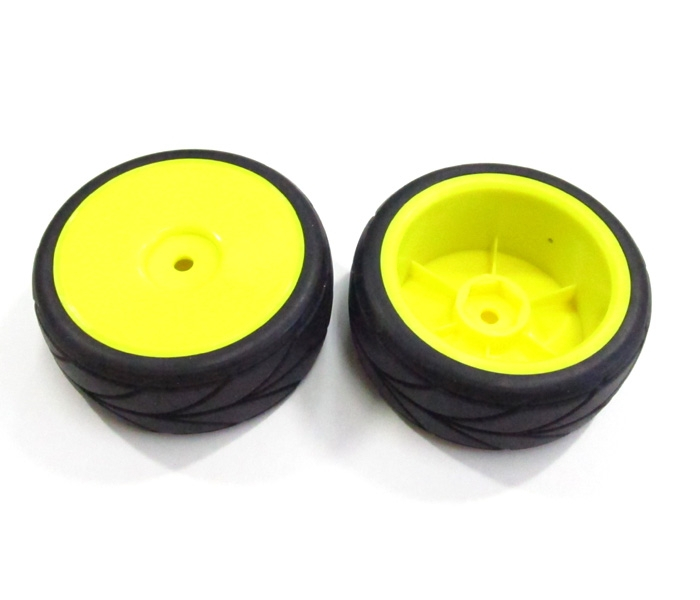 1/10 Mounted Dish Wheel & Rubber Tire Pattern W (2)