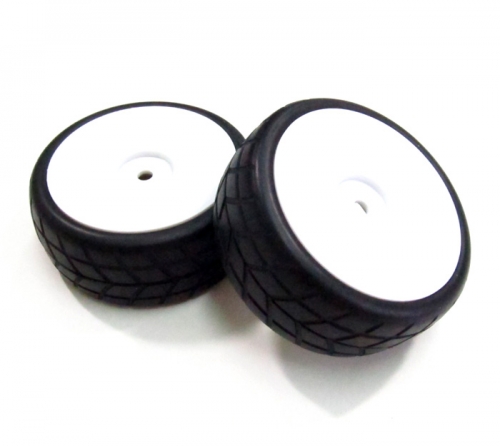 1/10 Mounted White Wheel & Rubber Tire Pattern Y (2)