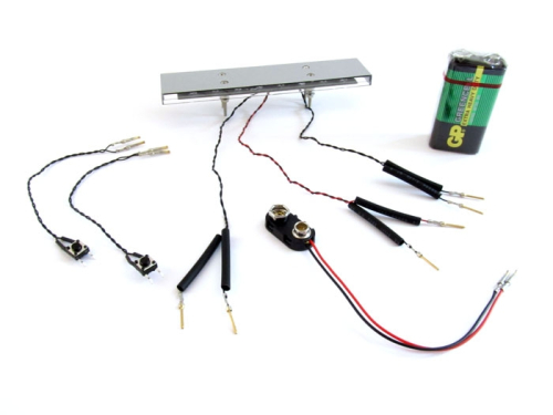 • Specifications: You can run the light bar with the supplied 9 volt battery, or you can connect it directly to the battery in your R.C. vehicle. The dimensions of the bar are 11.3cm X 2.4cm X 1.1cm. The light bar can handle up to 12 volt D.C. but no lower than 3 volts.