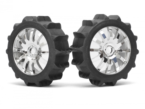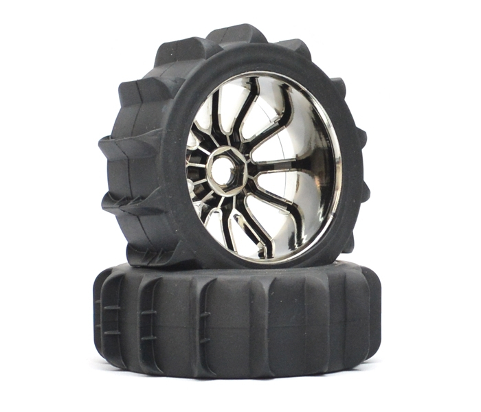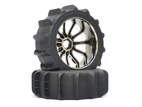 1/8 Buggy 12 Spoke Wheel & Desert Tire Set (1 Pair) Silver