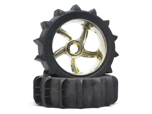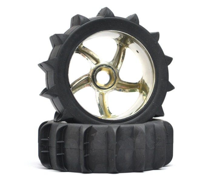 1/8 Buggy 5 Spoke Wheel & Desert Tire Set (1 Pair) Silver