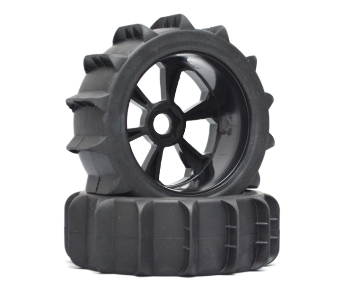 1/8 Buggy 6 Spoke Wheel & Desert Tire Set (1 Pair) Black