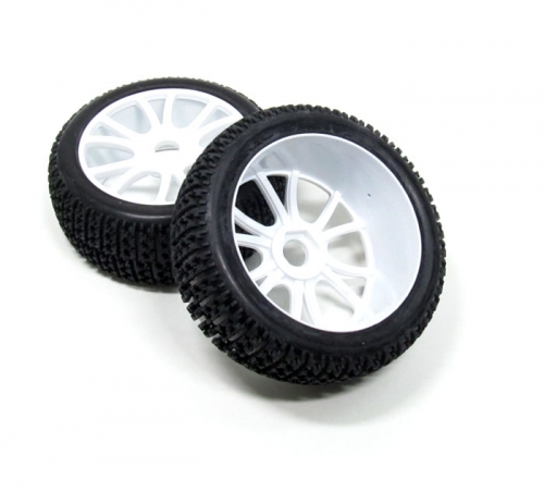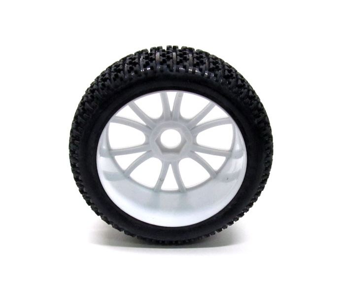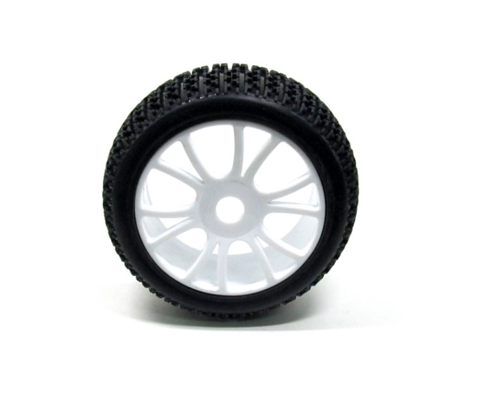 1/8 Buggy Wheel & Tire Set 12-spoke Pattern 4 (2) With Molded Inserts White