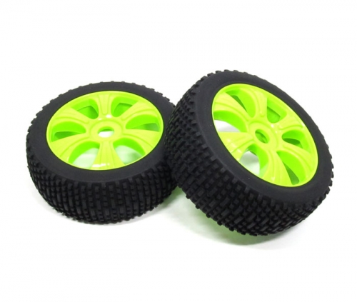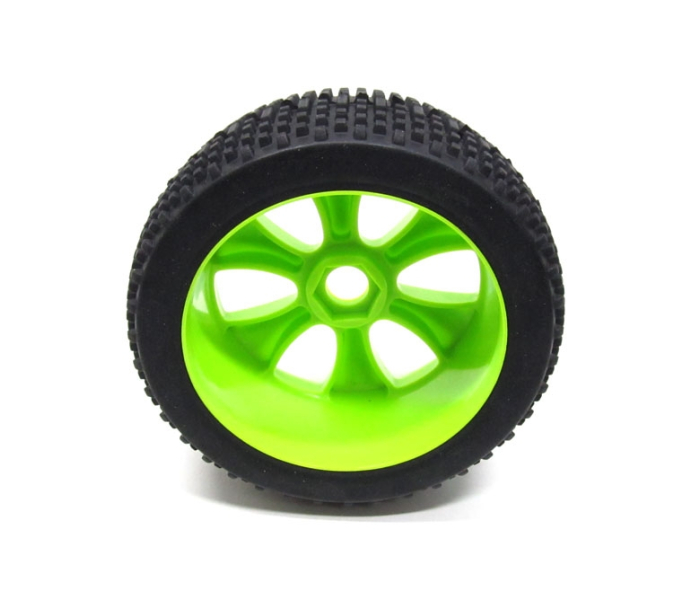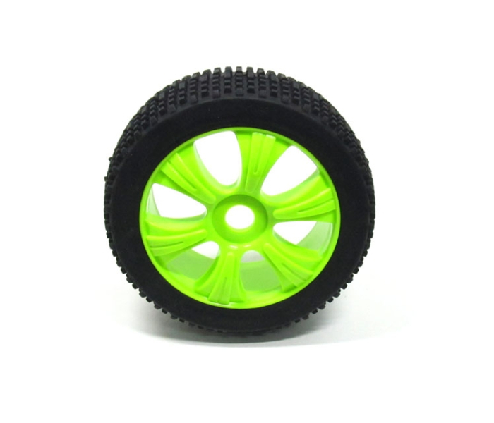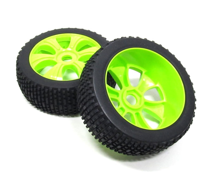 1/8 Buggy Wheel & Tire Set 5-spoke Pattern 2 (2) With Molded Inserts Off Road Green