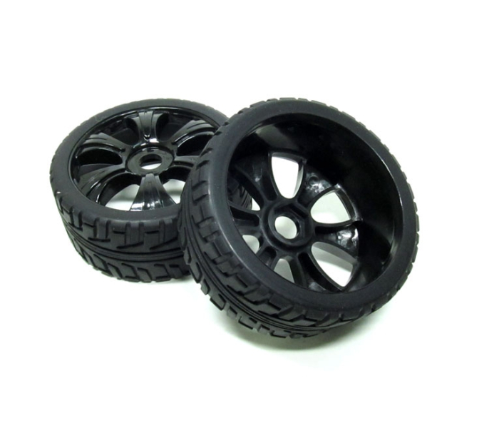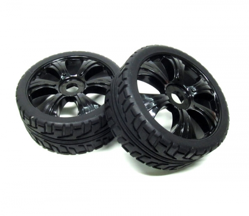 1/8 Buggy Wheel & Tire Set 5-spoke Pattern 3 (2) With Molded Inserts On Road Black