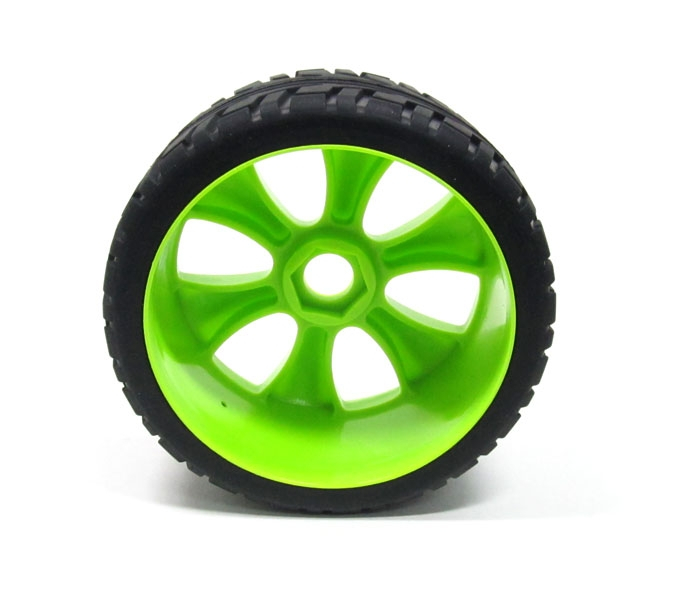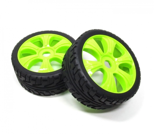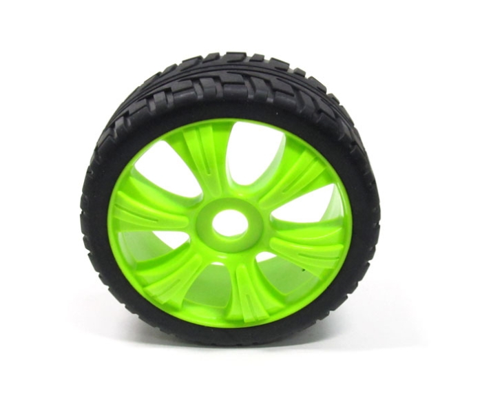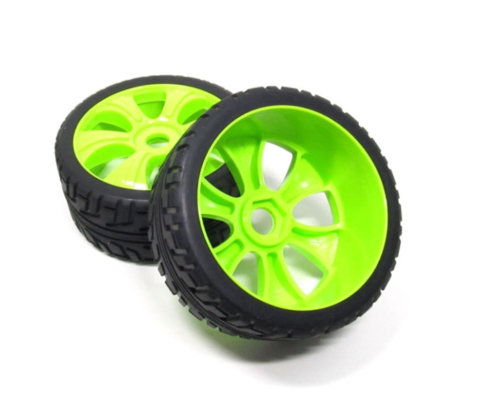 1/8 Buggy Wheel & Tire Set 5-spoke Pattern 3 (2) With Molded Inserts On Road Green