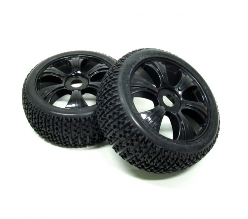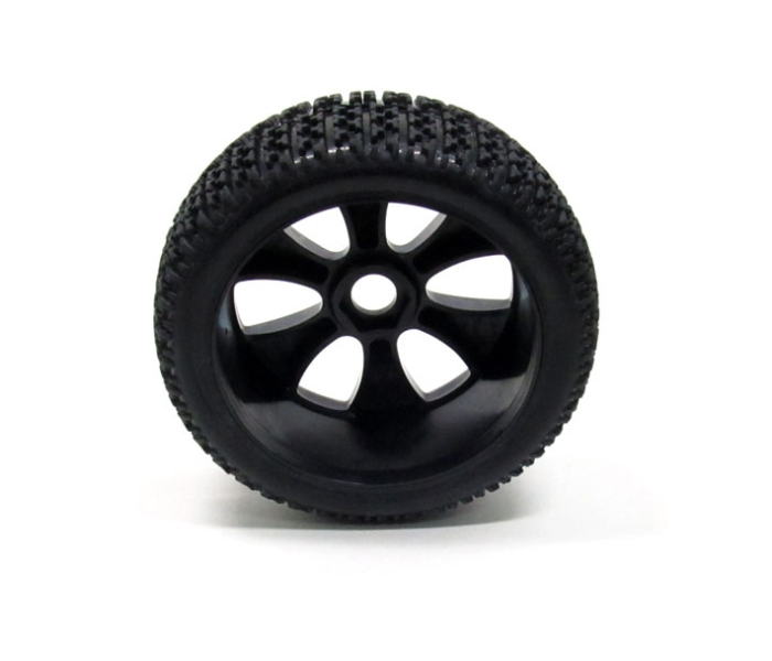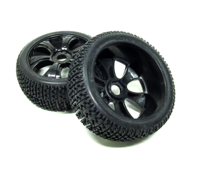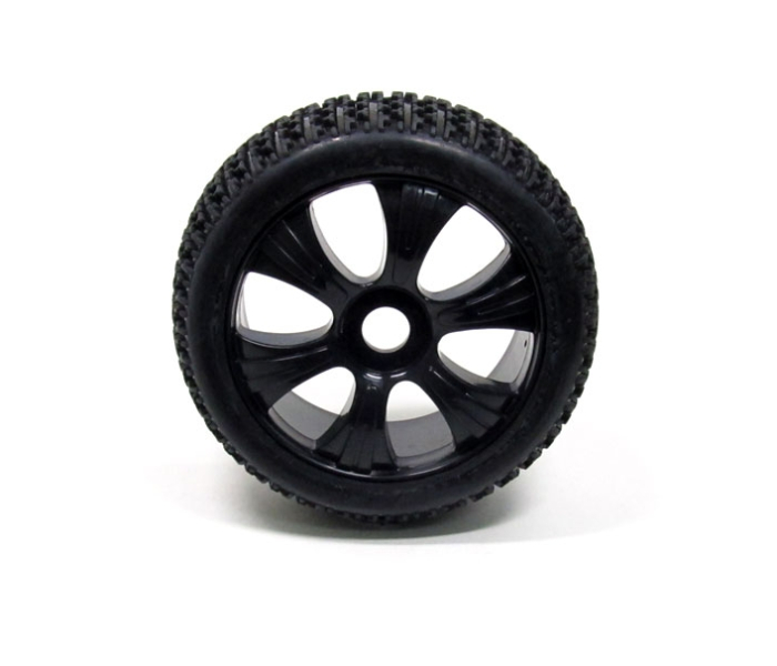 1/8 Buggy Wheel & Tire Set 5-Spoke Pattern 4 (2) With Molded Inserts Off Road Black