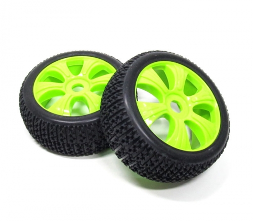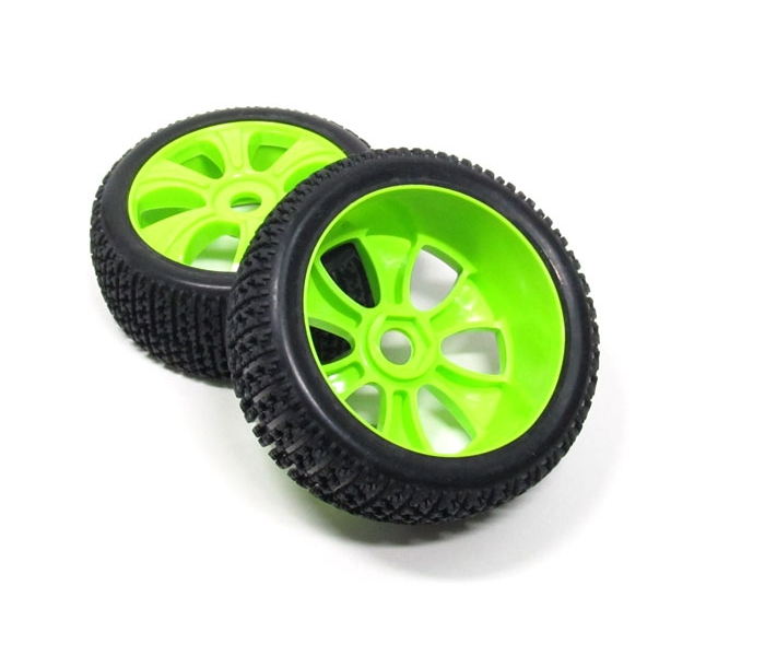 1/8 Buggy Wheel & Tire Set 5-spoke Pattern 4 (2) With Molded Inserts Off Road Green