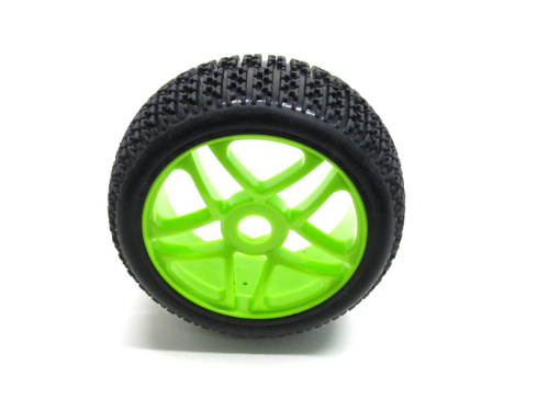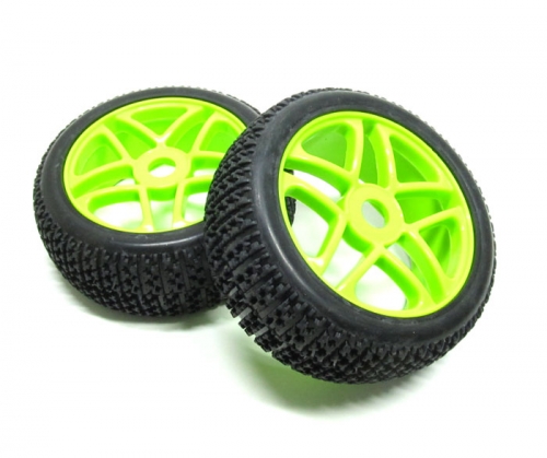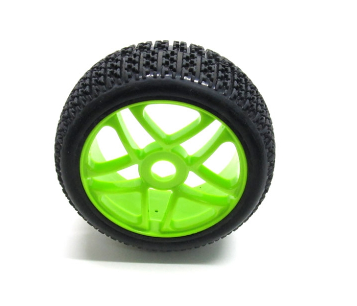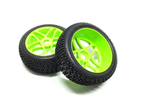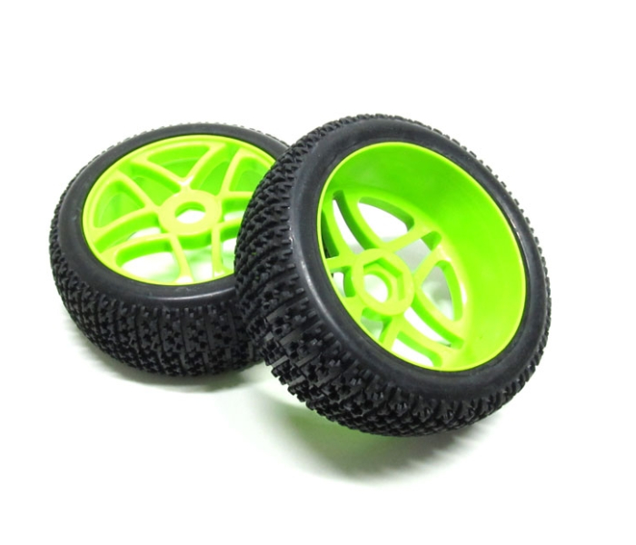 1/8 Buggy Wheel & Tire Set Dual 5-spoke Off Road (2) With Molded Inserts Green
