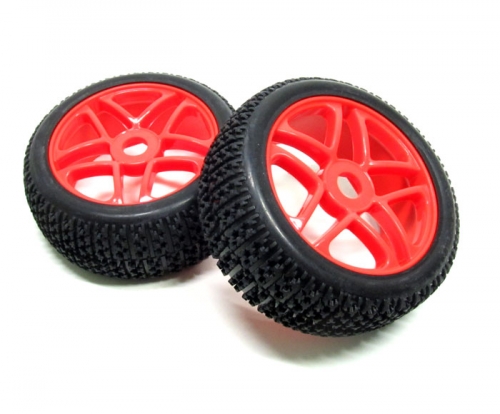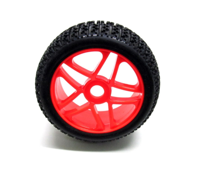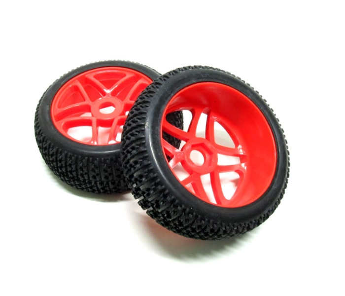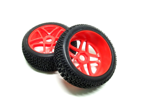 1/8 Buggy Wheel & Tire Set Dual 5-spoke Off Road (2) With Molded Inserts Red