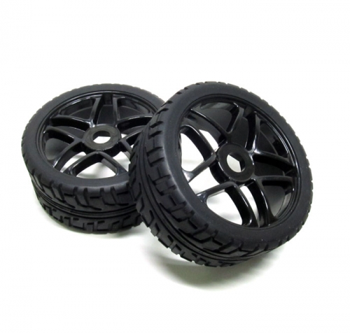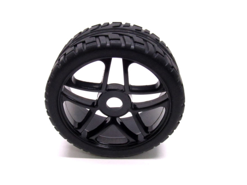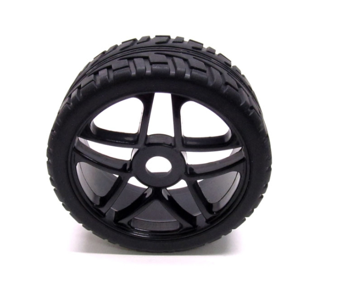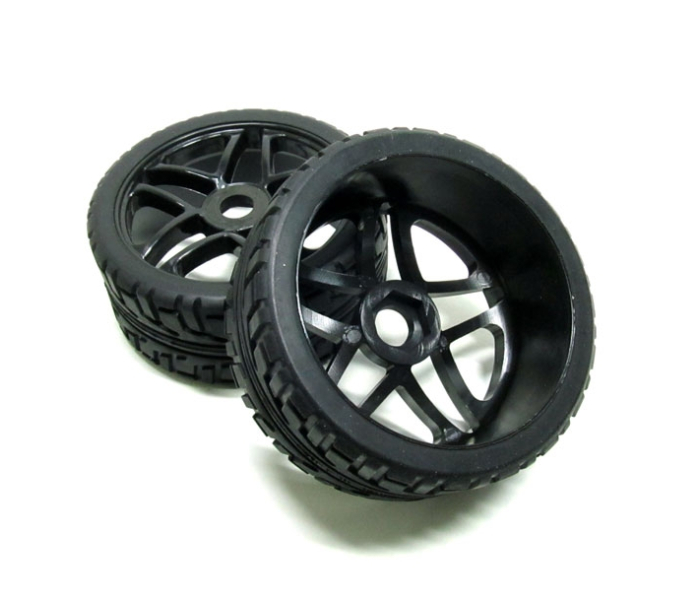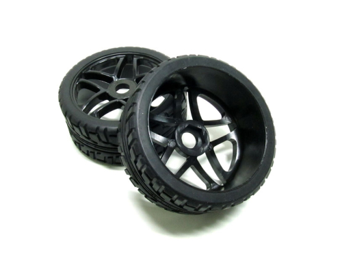 1/8 Buggy Wheel & Tire Set Dual 5-spoke On Road (2) With Molded Inserts Black