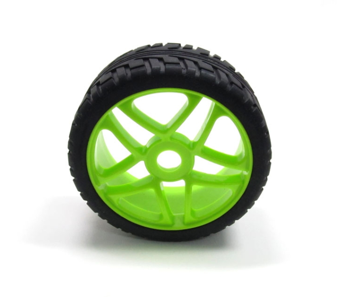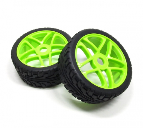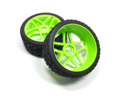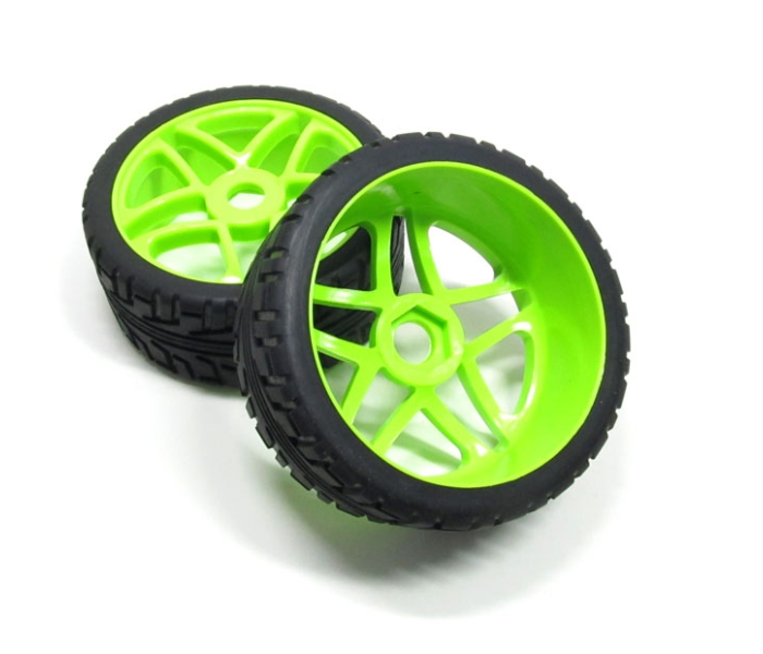 1/8 Buggy Wheel & Tire Set Dual 5-spoke On Road (2) With Molded Inserts Green