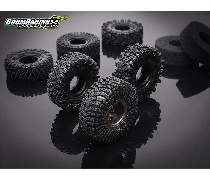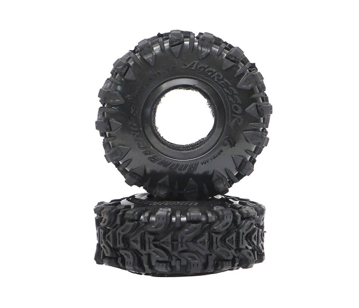 This is a pair of Boom Racing AGGRESSOR™ 1” Rock Crawling Tires. GEKKO™ compound is soft and sticky. It is developed specifically for RC crawling & trailing.