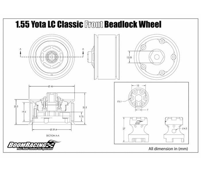 Each set of wheels has two designs; remove the front cover, put the 6 nuts and bolts in for the classis Yota look. This also serves as a platform for future wheel designs.