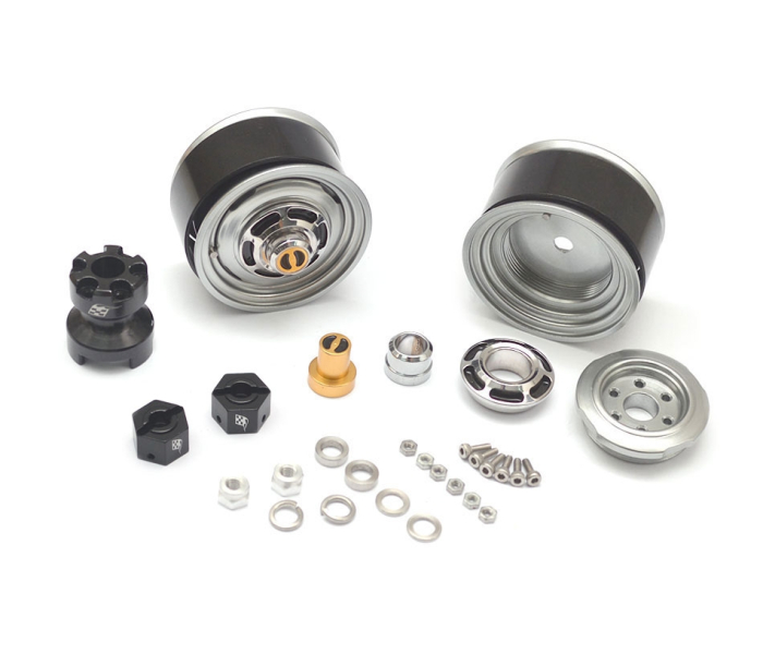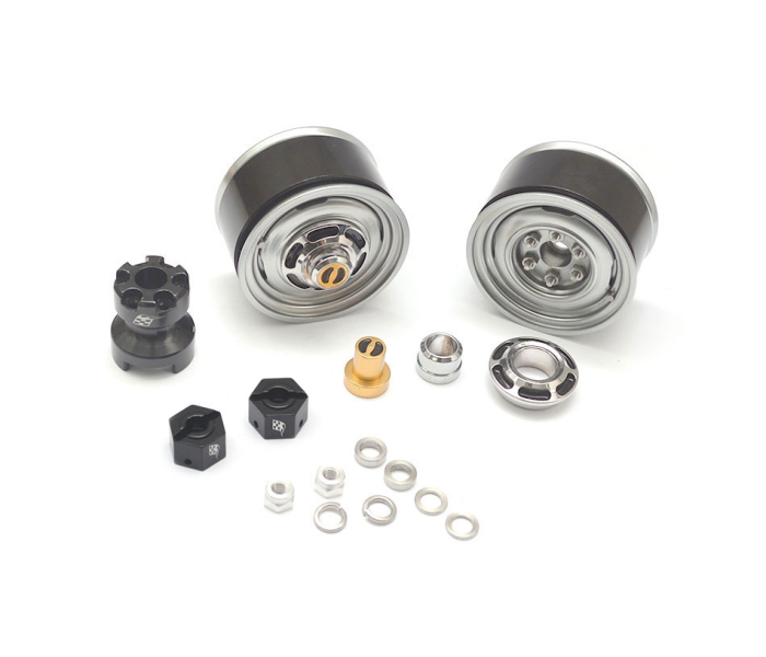 1.55 Yota LC Classic Front Beadlock Wheels (2) with 3mm Wideners (2) Gun Metal