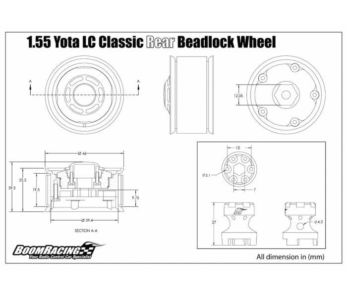 Each set of wheels has two designs; remove the front cover, put the 6 nuts and bolts in for the classis Yota look. This also serves as a platform for future wheel designs.