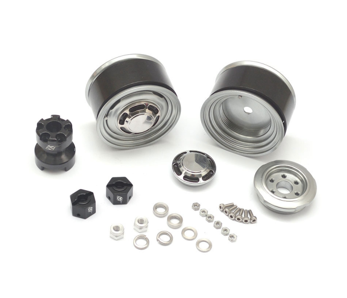 Each set of wheels include two beadlock wheels (front or back), a multi tool to tighten and remove the face cover of the wheel, and all hardware.