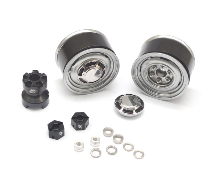 1.55 Yota LC Classic Rear Beadlock Wheels (2) with 3mm Wideners (2) Gun Metal