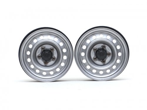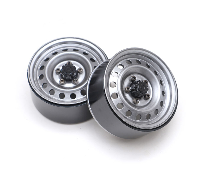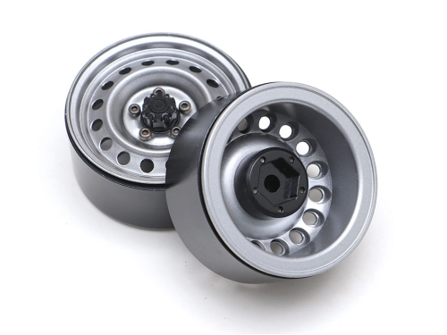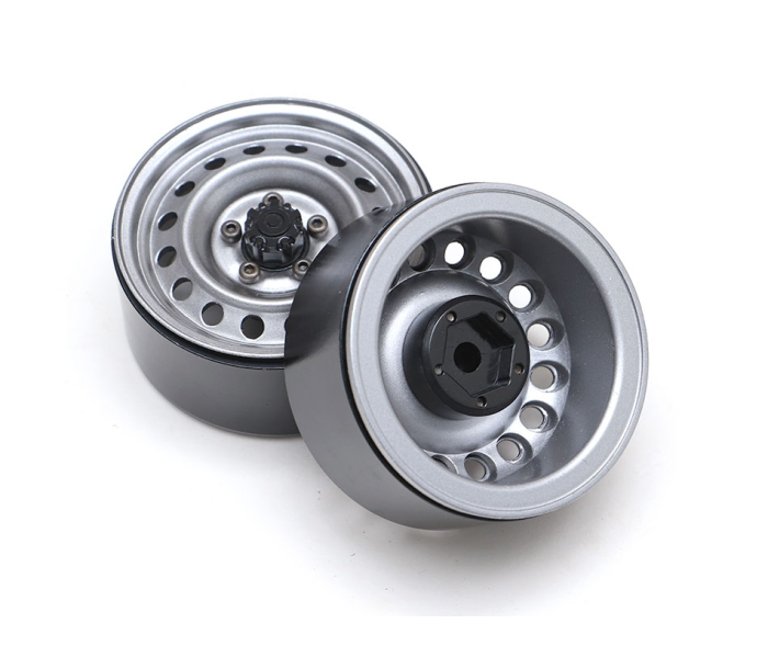 This is a set of front reversible 1.9" 16-hole steelie beadlock wheels (2). Perfect for 1/10 scale truck builds.