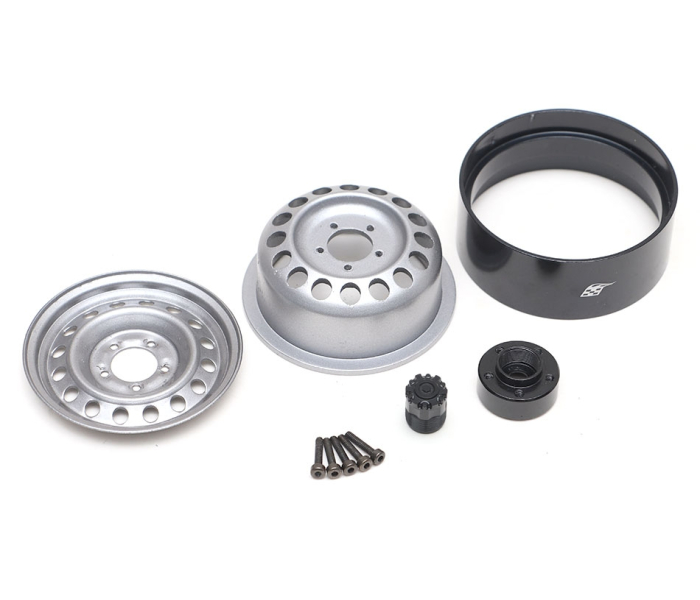 1.9" 16-Hole 5-Lug Classic Steelie Reversible Beadlock Wheel w/ XT504 Hub Front (2) Gun Metal