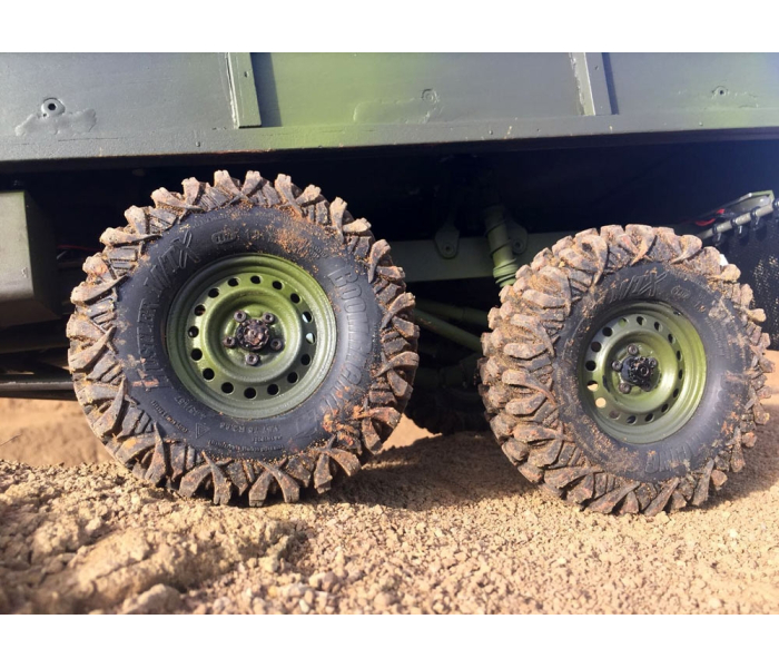 The front face is made of pressed steel for accurate scale looks. The rear is made of CNC aluminum for the high quality finish.