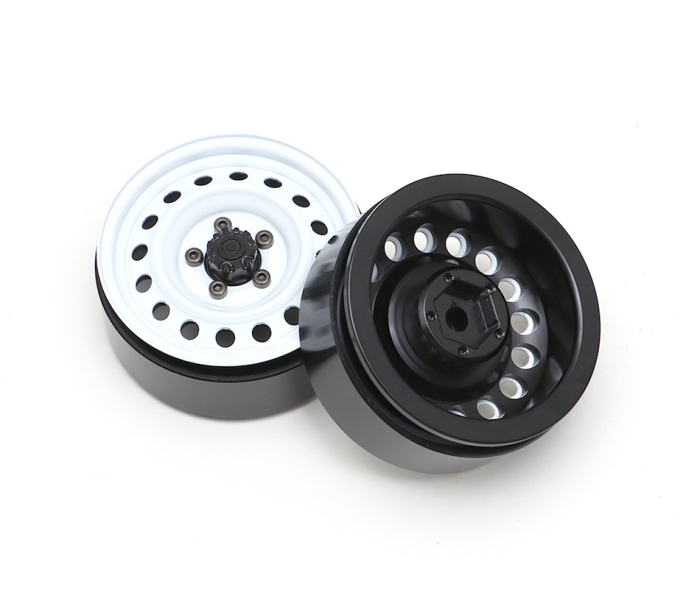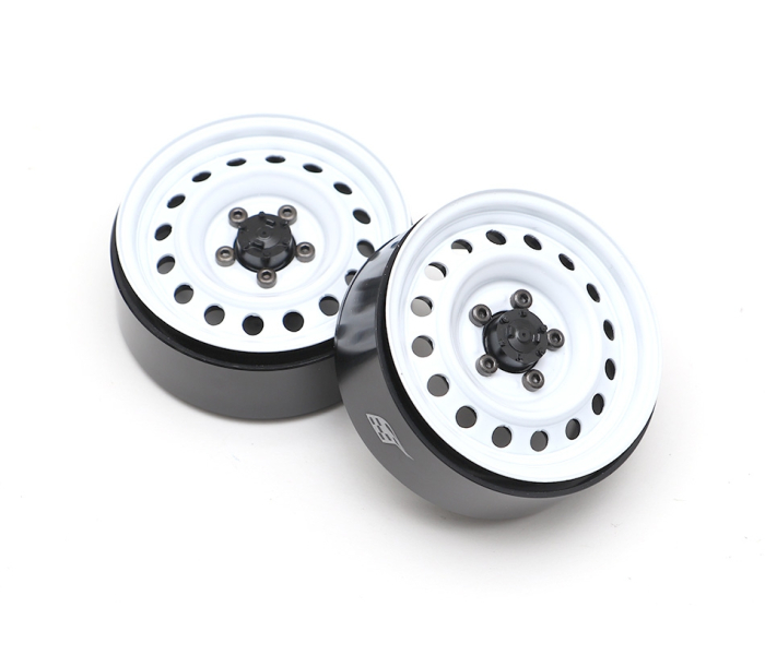 1.9" Narrow 16-Hole Classic Steelie Reversible Beadlock Wheels (Rear) w/ XT504 Hub (2) White