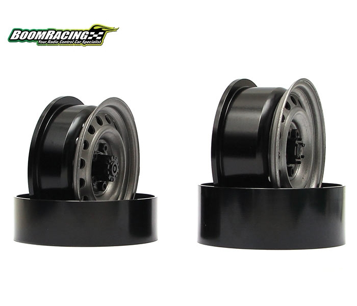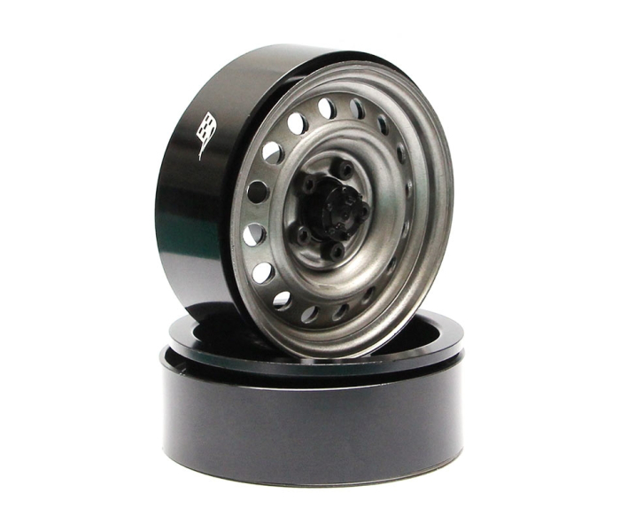 1.9 Narrow 21mm Badass Classic 16-Hole Steelie & CNC Aluminum Beadlock Wheels w/ Center Hubs (Rear) 2pcs Gun Metal