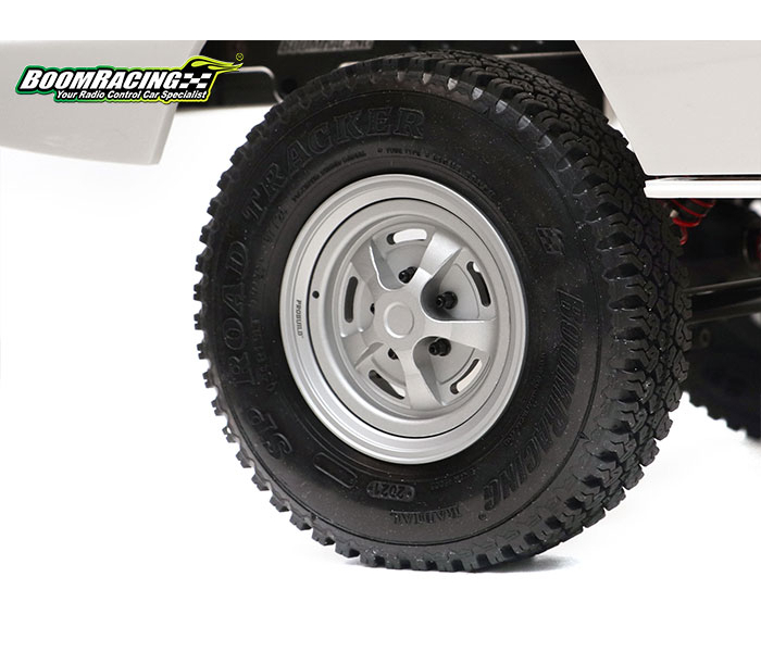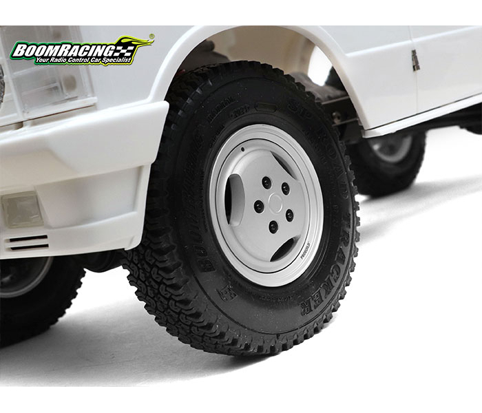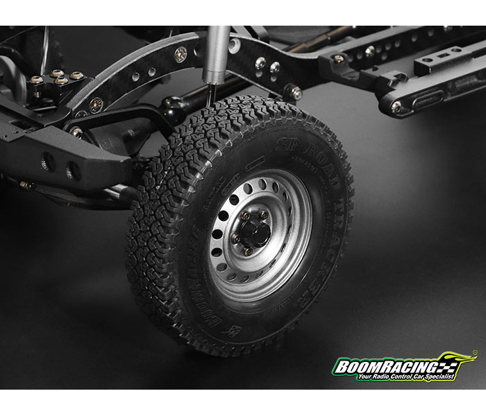 This 1.9" SP Road Tracker SCALE RC tire is a replica of 1:1 tire. The narrow track at 0.94" (24mm) is the perfect size for builds such as the LR Defender or any older vehicles. Build the ultimate project with the 1.9" SP Road Tracker tire!