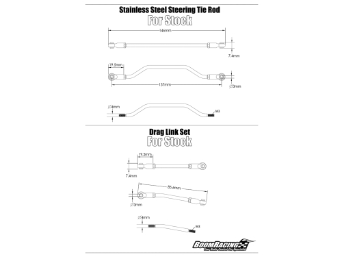 4mm stainless steel links. Stock length. Comes with four aluminum ball ends. Hardware included.