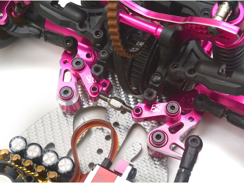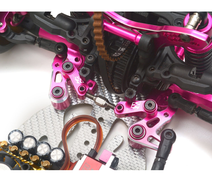 Replacement for the stock FRP and aluminum parts and compatible with both AWD and RWD versions of the Sakura D4. Available in signature Sakura anodized pink, gun metal, or silver. Includes mounting screws for easy mounting.