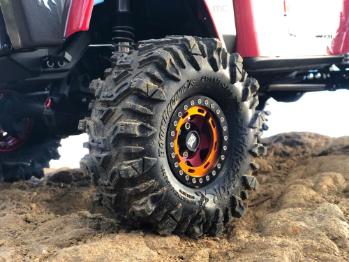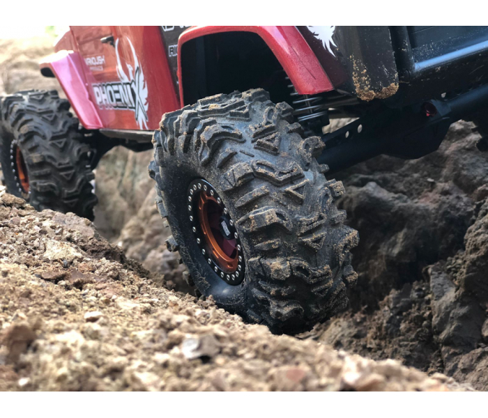 AGGRESSOR™ 1.9" GEKKO™ RED 4.75"x1.75" 120x44.5mm RC Crawler Tire + Rock Monster™ Green Foam Insert (2)