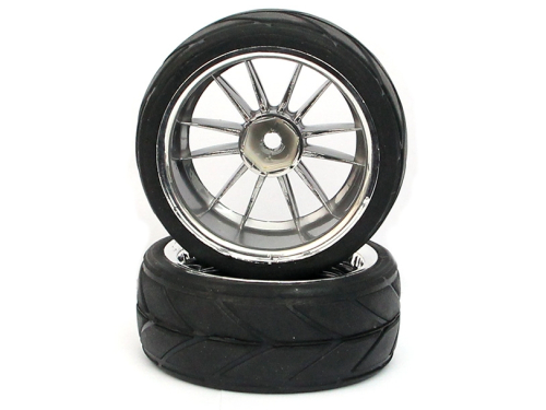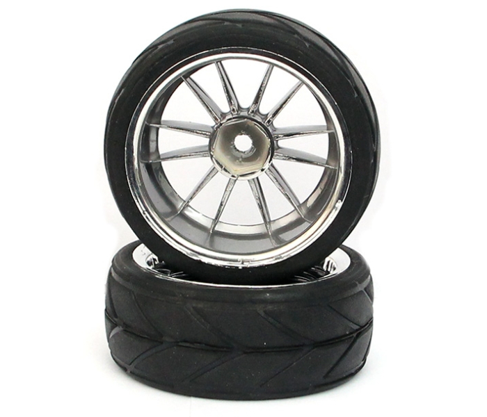 Alloy Outer Ring Wheel & Tire Set 10-Spoke For 1/10 - Silver