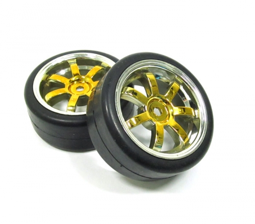 Alloy Outer Ring Wheel & Tire Set 7-spoke For 1/10 Yellow