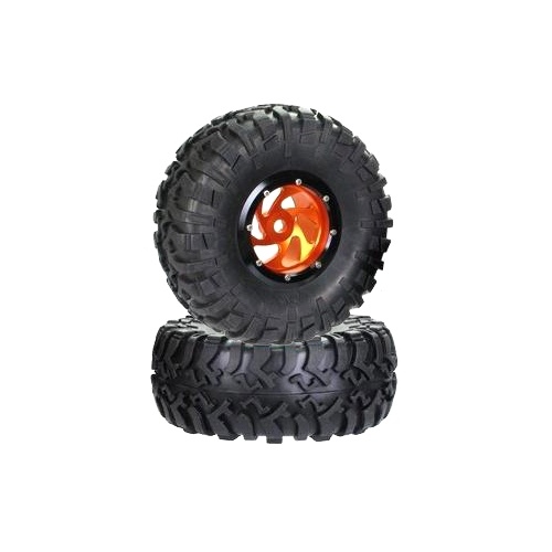 Aluminum 2.2 6-Cyclone Giga Beadlock Wheel & Zig-Zag Tire Set (2) Orange