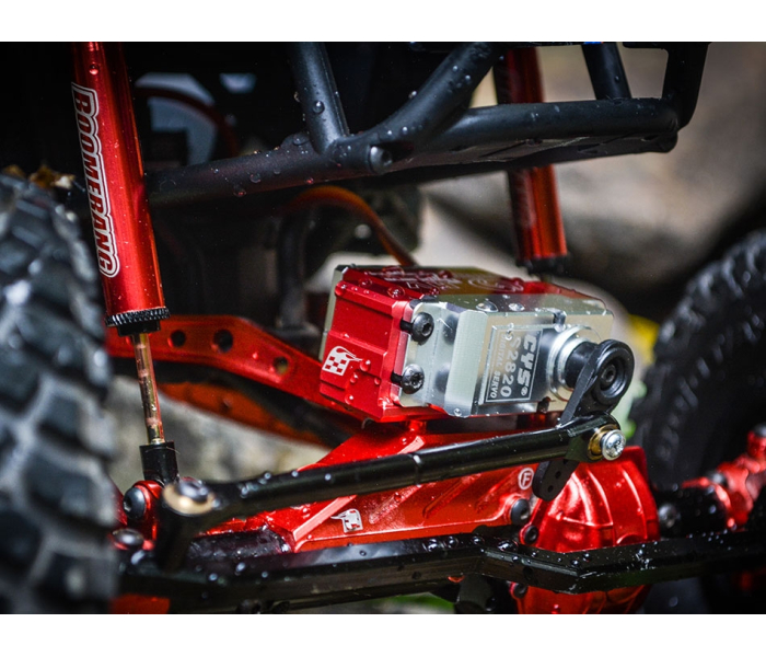 The new Aluminum Scale Trail One-Piece Servo Mount from Boom Racing is compatible with the RR10 Bomber and the Wraith. This servo mount provides a lot of rigidity to your steering, allowing you to take on any crawling or rock racing scenario with ease.
