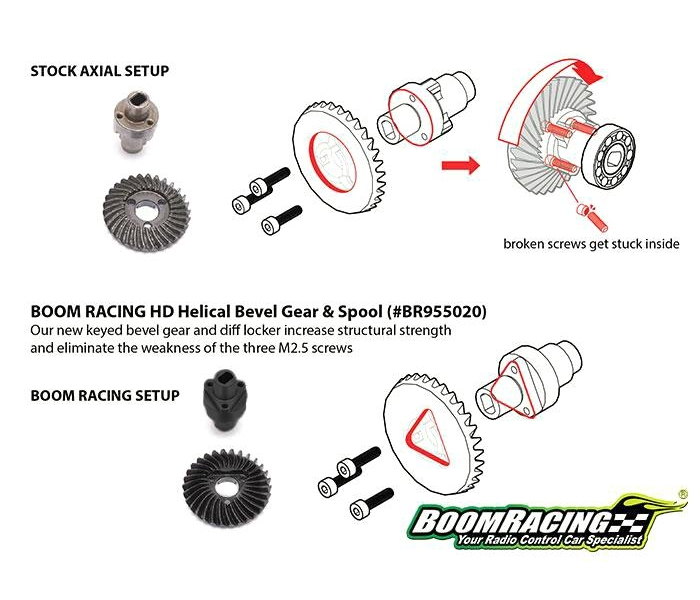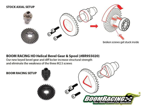 HD steel diff locker spool for Boom Racing keyed gears.