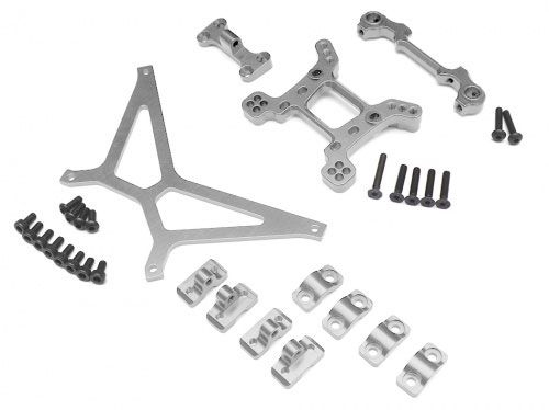 Axial Yeti Performance Combo Package E With Tool Box (Shock Tower,Front Body Mount Base,Front Bumper Mount Base,Battery Holder Strap) Silver
