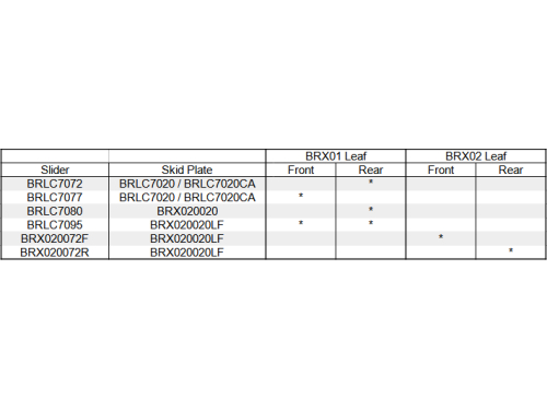 This is a 3D nylon front slider option part for the BRX01 center skid plate (#BRLC7020). It works with the front leaf spring conversion kit (#BRLC7201).