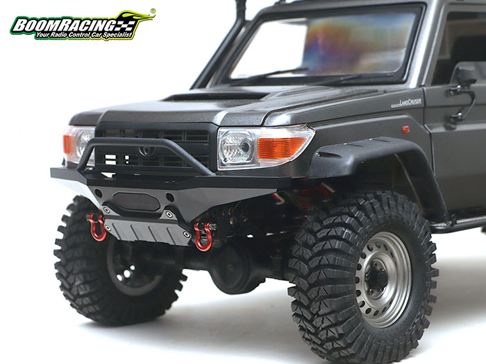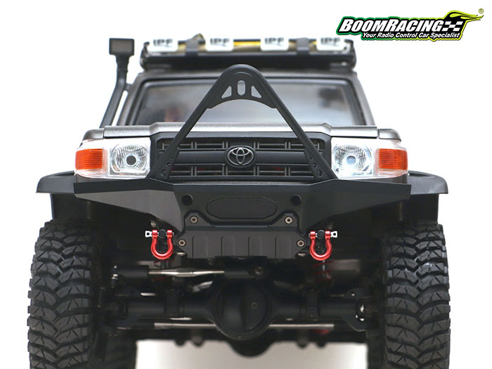 Boom Racing releases this all-new KUDU™ High Clearance Bumper Kit (#BRLC7094) designed for the BRX01 chassis. This is a heavy-duty front bumper made from CNC billet aluminum to use with the LC70 body.