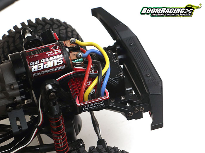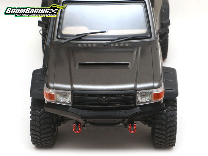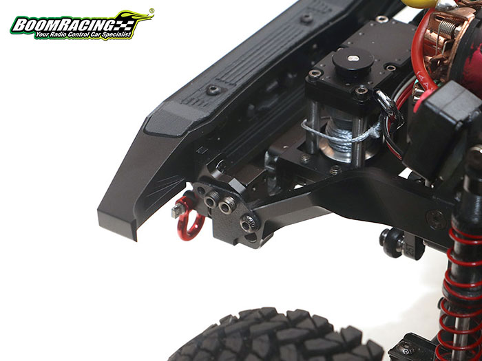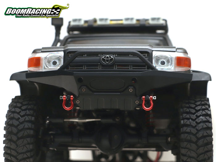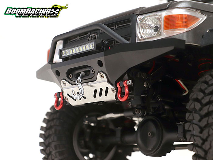 The aggressive Bumper sits higher than normal and has a bigger approach angle, giving the truck more clearance to go over bigger obstacles. The KUDU™ Bumper directly mounts onto the BRX01 and fits perfectly with the Toyota LC70 body. This bumper kit includes a realistic scale aluminum fairlead, a set of heavy-duty red anodized aluminum shackles, a CNC machined delrin skid plate, a Bull Bar Delete Plate and a Fairlead Delete Cover if you choose to keep the original look and/or do not use an internal winch.