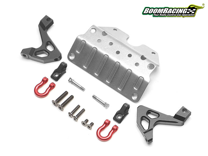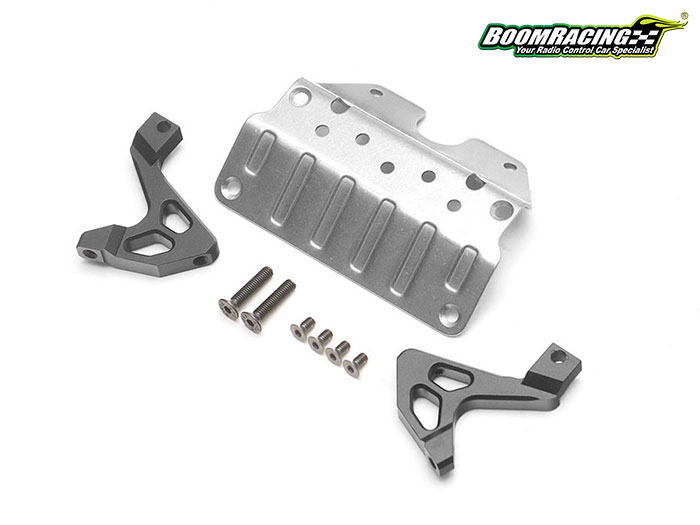 Protect your chassis with this stainless steel front skid plate set. It comes with an optional bumper alum mount and alum shackles for the BRX02 chassis.