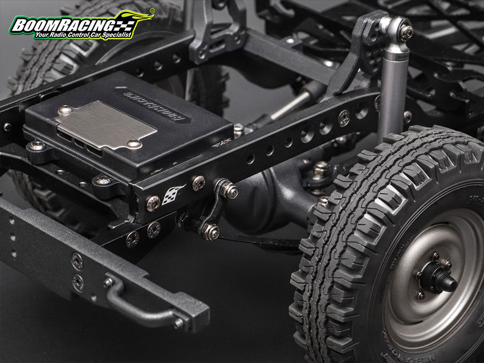 The Boom Racing Land Rover Series III project began with the BRX02 Leaf chassis as a starting platform with a 334mm wheelbase.