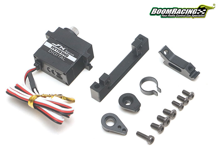 Factory description: Boom Racing BRX02 Mini Servo Mount Set for BRX01 w/ Mini Servo @ 8.4v