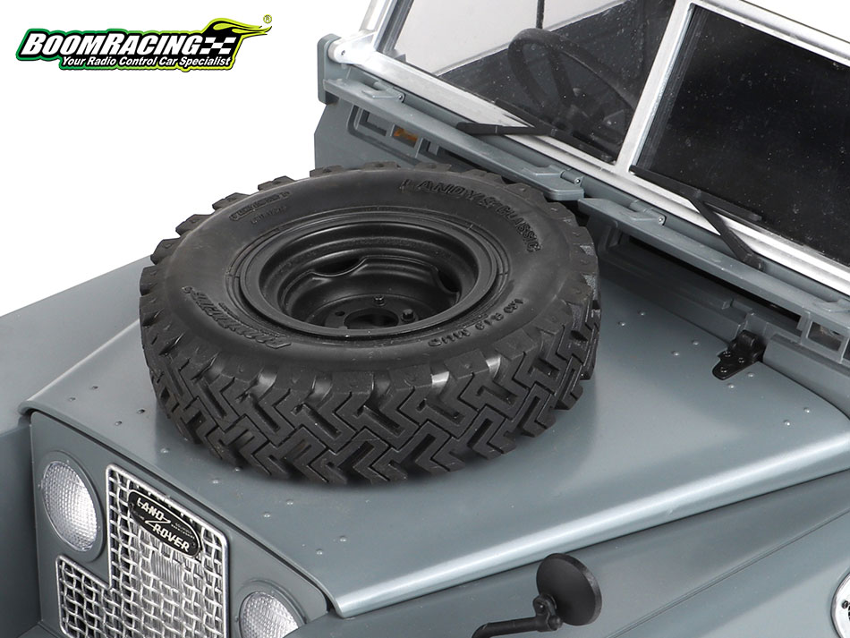 Introducing the front and rear spare wheel and tire sets for Series Land Rover® vehicles, which are now available for purchase. Each set comprises a Landy Classic 1.9" tire, a lightweight spare wheel, and a spare wheel mount. Furthermore, the package includes all essential hardware and drill bits for installation purposes.