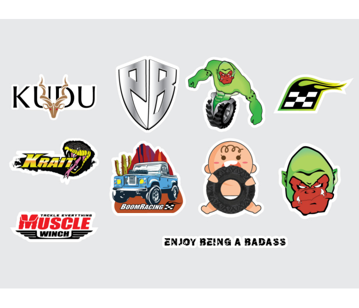 Get your sticker game on! This is a set of ten Boom Racing waterproof die-cut stickers.