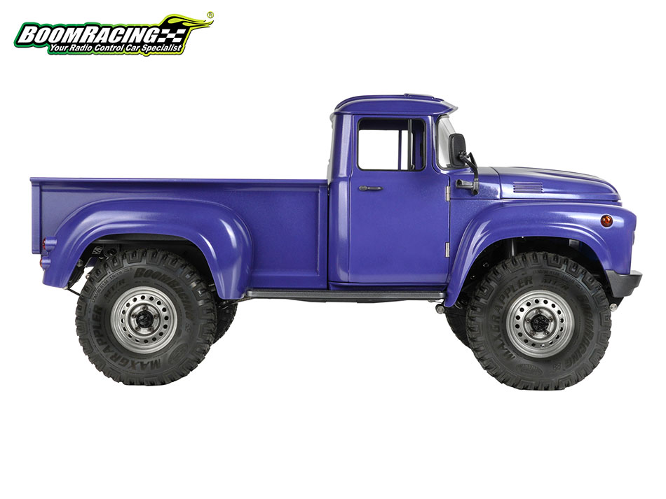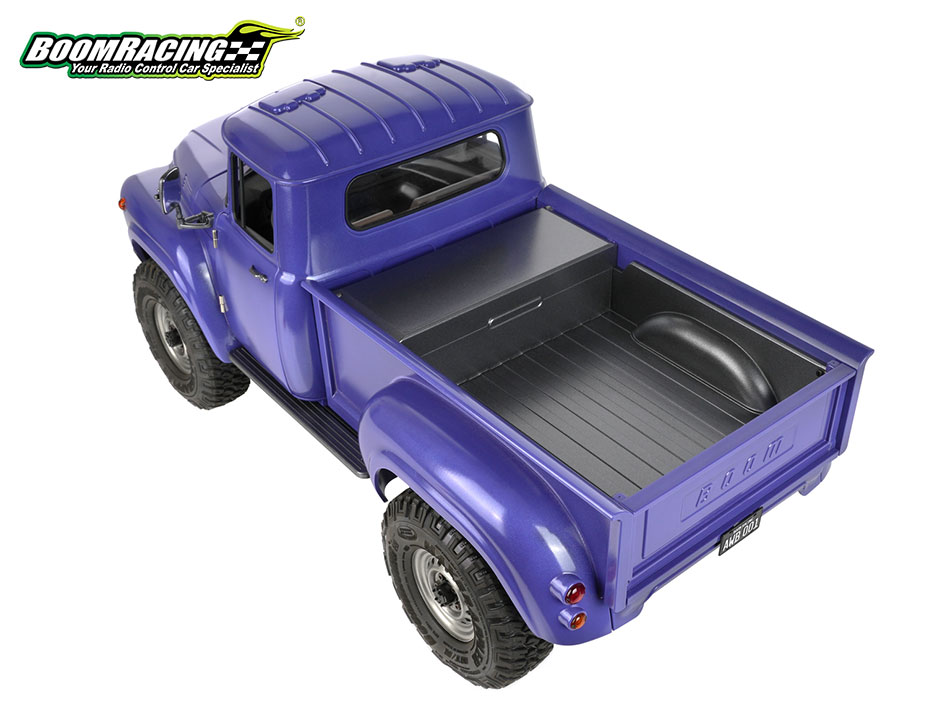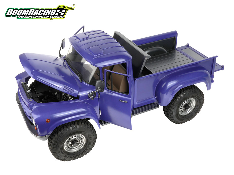 The ZIL Pickup is a fully molded ABS hard body with a 267mm wheelbase. Inspired by classic 1950s–60s pickups, it features a fully separated cab and bed, full interior, functional doors, hood, and tailgate. It includes a realistic radiator, rubber mirror frames with chrome mirrors, and a full drop bed with a built-in compartment for your battery. It has 10 LED light buckets and lenses for the optional KUDU light kit (future release). Side steps are included and integrated for the BRX01 AWB chassis.