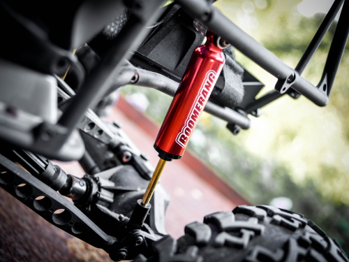 The droop setup keeps your truck lower to the ground at all times than does a normal spring shock setup. This keeps the center of gravity lower and stabilizes the truck, keeping all four tires in contact with the ground on uneven terrains.