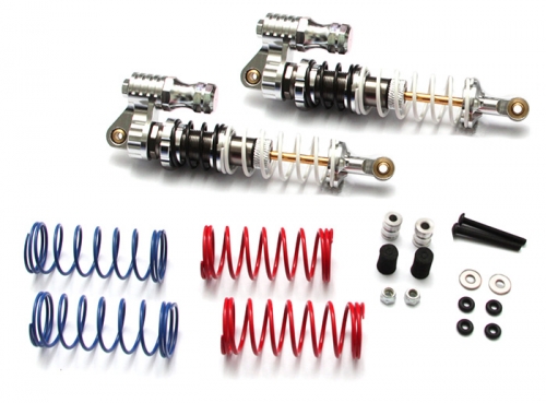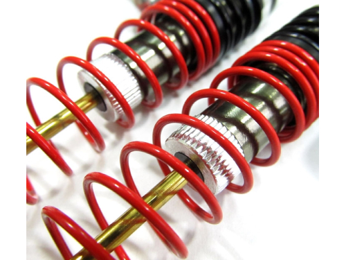 • Double spring setup for extra progressive damping effect. It has higher range than 1 progressive spring. The effects of one progressive spring is not enough for RC cars as it is much lighter than real cars. Double suspension however gives a good simulation of real car progressive spring effects.