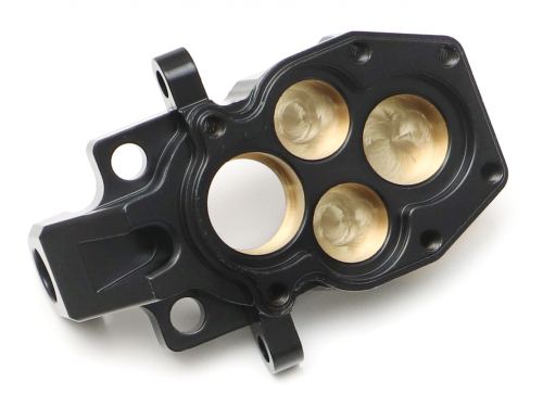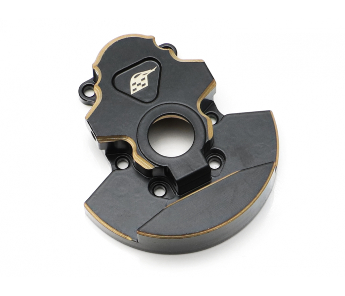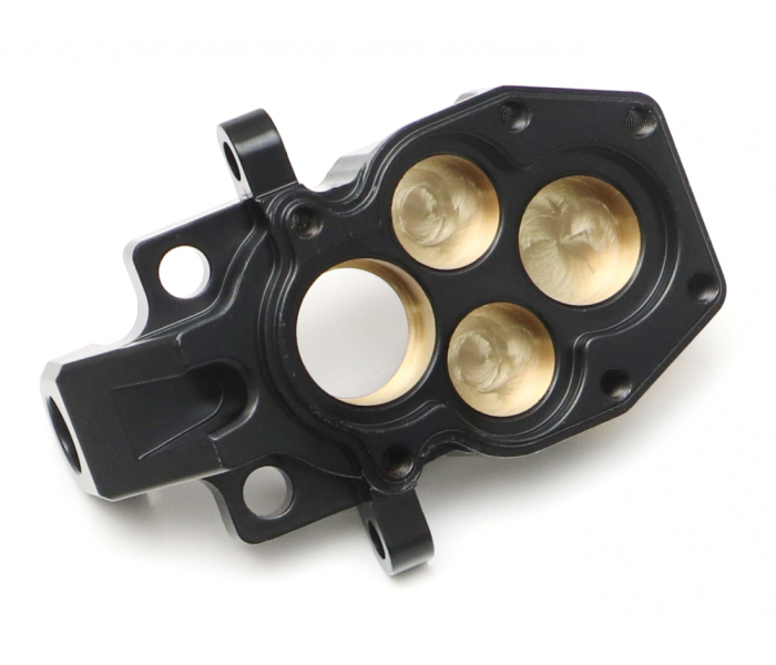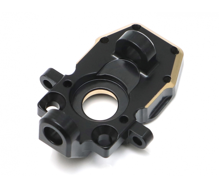 This is a set of front brass knuckles and front brass portal covers. Anodized in black with raw brass gold trims. They add weight to the bottom of the truck, which keeps the center of gravity as low as possible. Weighs a total of 130.9 grams.